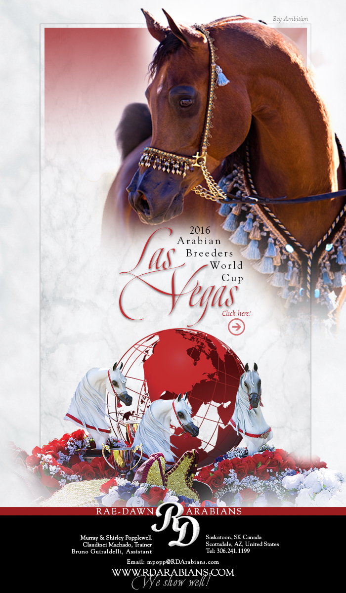 Outstanding success for the RaeDawn Arabians breeding program at the 2016 Arabian Breeders World Cup in Las Vegas... RaeDawn was well represented and we couldn't be more proud of the success our horses acheived.